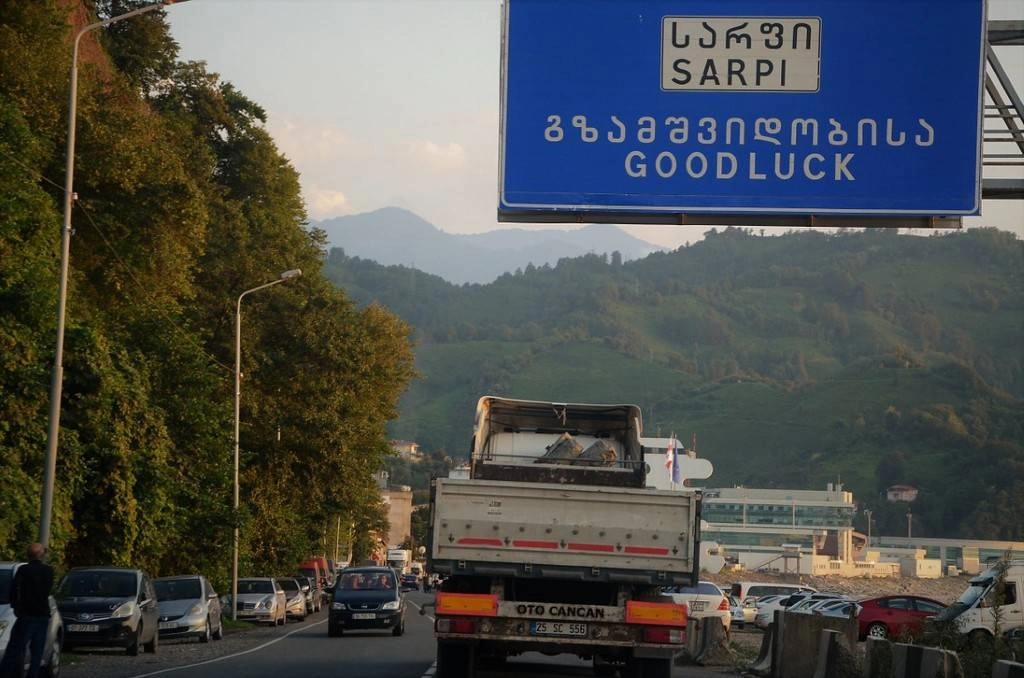 Перед самым пограничным терминалом мы поворачиваем влево и поднимаемся вверх, это село Сарпи.