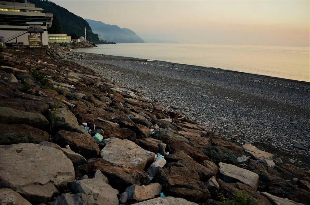 Забавно, что лучшие пляжи Батуми расположены прямо на границе. Днем здесь тьма людей. Главное — за эту табличку не заходите, а то турки могут проявить исключительно НЕ гостеприимство.