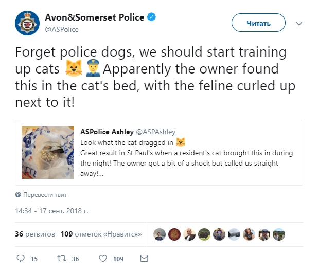 «Забудьте про полицейских собак, надо начинать подготовку кошек», — предложили они.