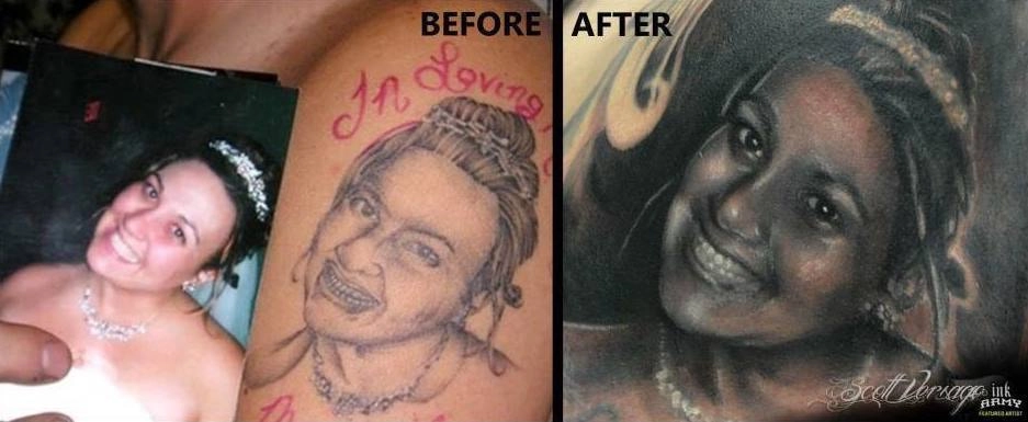 Татуировки — неотъемлемая часть современной жизни. Современные люди охотно рисуют на коже портреты людей, животных и целые картины. Но если одни тату вызывают восхищение, то другие — только нервный смех. Впрочем, даже неудачные татуировки можно исправить. Главное — найти хорошего мастера, который из нарисованного фиаско сделает шедевр. Собрали для вас вдохновляющие того, как можно исправить самую ужасную татуировку.