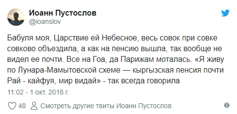 Средняя пенсия в Кыргызстане составляет 5 тысяч 401 сом или 5200 рублей. Жители страны попытались объяснить замминистру, как живут пенсионеры, но та заверила, что сама неоднократно беседовала с ними на эту тему.