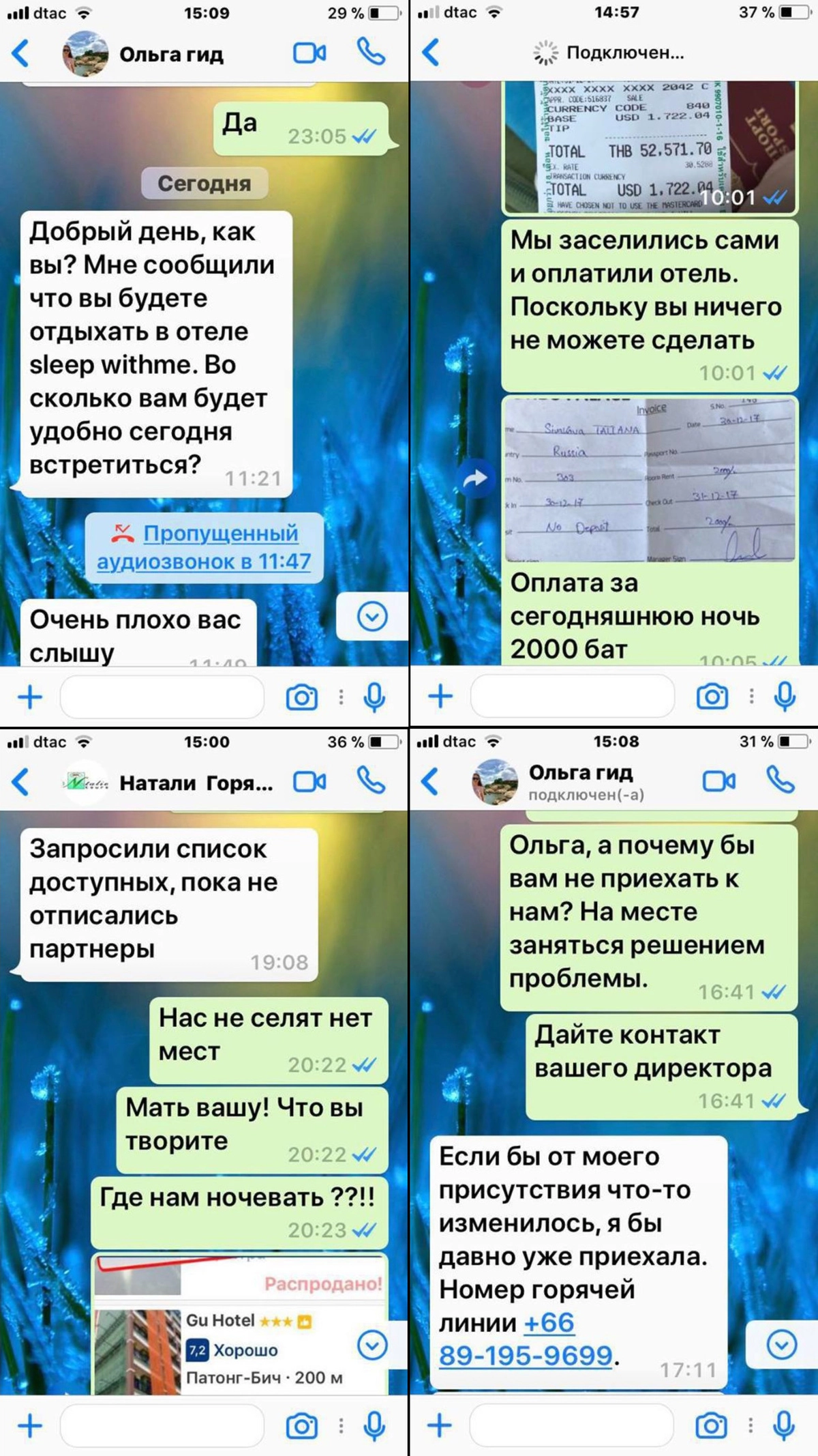 «Ночь ночевали в каком-то бомжатнике и заплатили за него 2000 бат (примерно 3,6 тысячи рублей). Без завтрака и без всего, хотя у нас все заплачено было в том отеле, в который мы покупали путевку», — рассказала Сивакова.