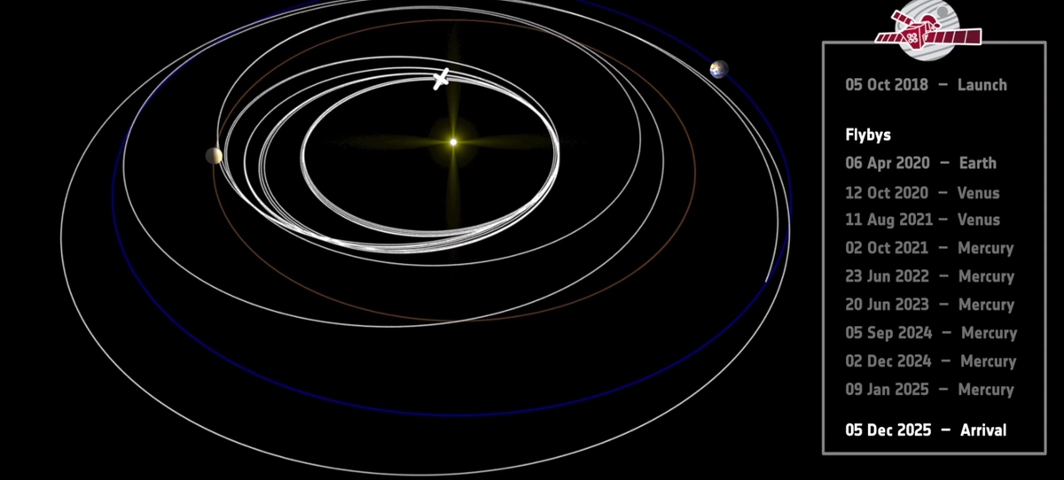 Чтобы выйти на нужную орбиту BepiColombo придется обогнуть Землю, дважды обойти Венеру, и шесть раз пройти мимо Меркурия. Такой маршрут позволит аппарату получить необходимую энергию и не упасть на Солнце.