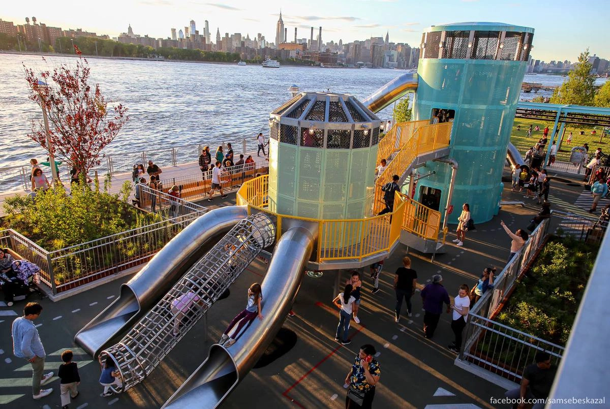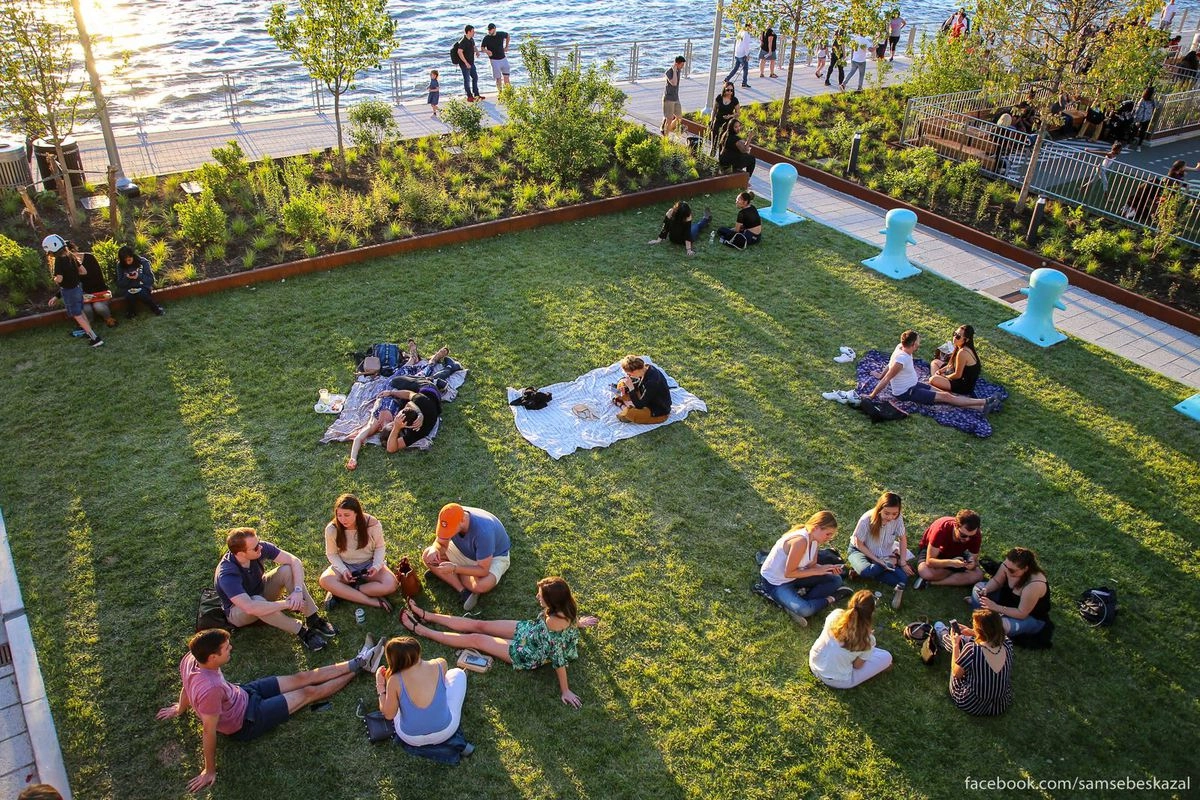 Мой вывод: не Хайлайн, конечно, но все равно классно. Все очень качественно сделано и неплохо продумано. Есть газоны, скамейки, променад, спортивные зоны, кафе и отличная детская площадка. Ко всему этому прилагаются отличные виды на Манхэттен.