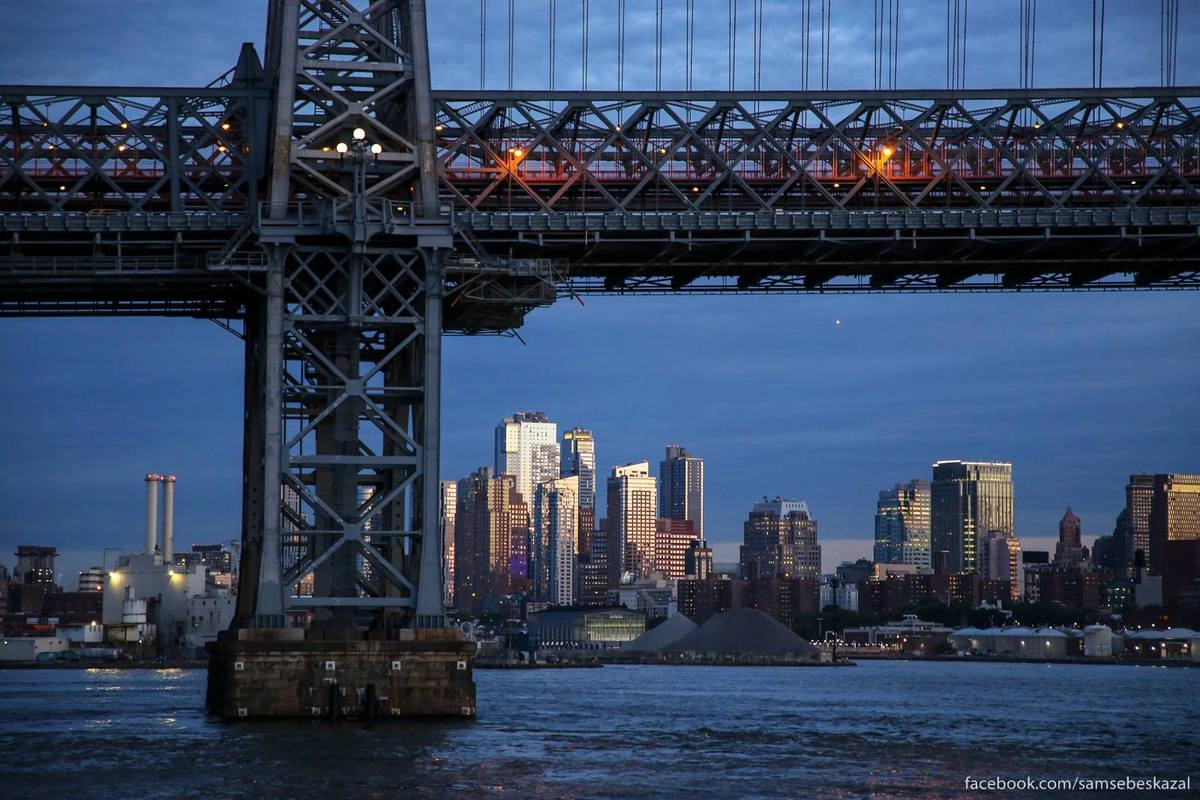 Фактически это парк-набережная. Его значительная часть сделана над водой на сваях. Мост на фото называется Уильямсбургский.