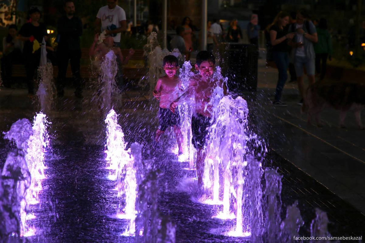 Фонтаны с подсветкой, где без остановки носятся дети.
