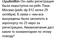 Накануне в Instagram компании появилось сообщение с просьбой регистрироваться на рейс онлайн.
