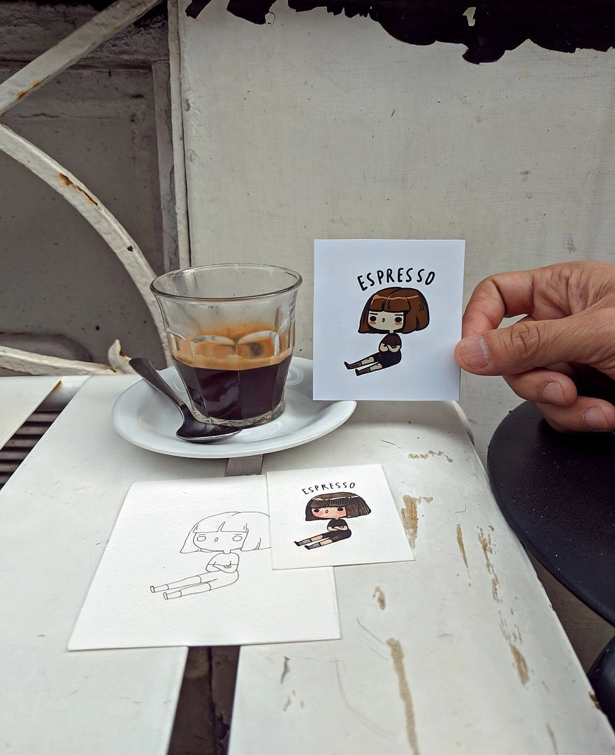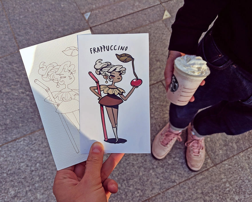 Вдохновлённая кофе художница нарисовала напиток в виде мультяшек