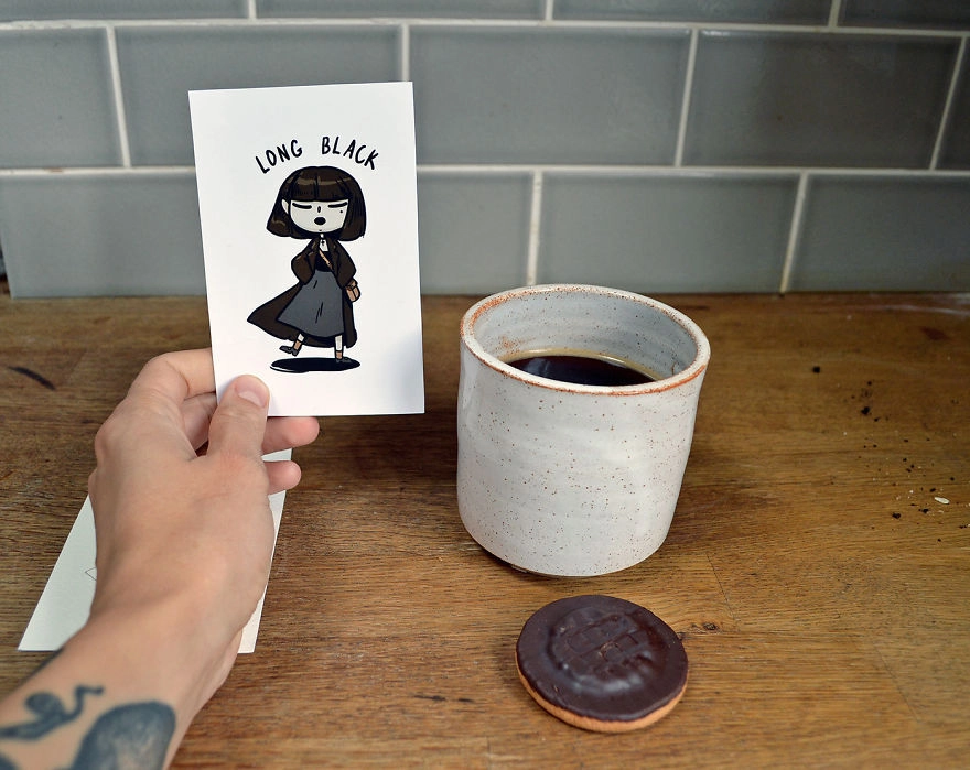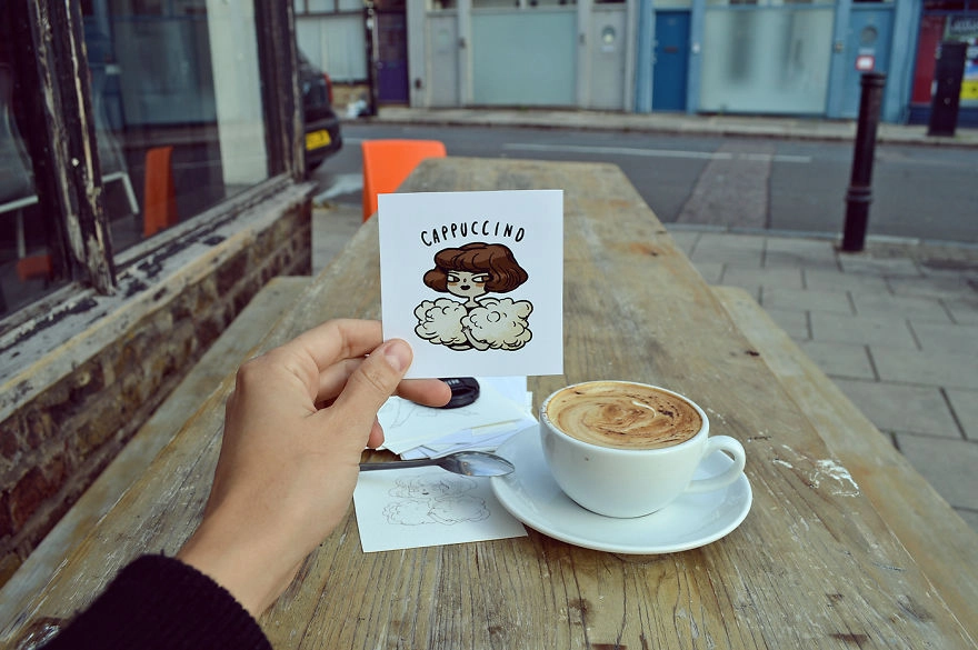 «Я обожаю кофе, пью его даже слишком много, поэтому рисовать было очень весело!» — пишет художница в своём Instagram, за которым следит уже более 100 тысяч человек.