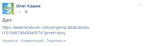 Кашин на выпады Альбац отреагировал крайне лаконично: