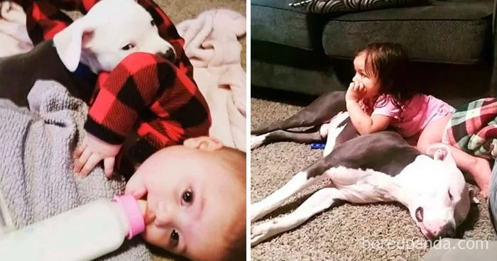 18. «Мы взяли 8-недельную собаку, когда дочке исполнился год. С тех пор они неразлучны»