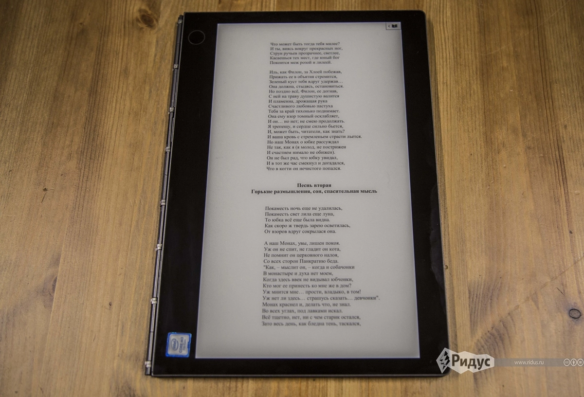 В режиме «читалки» на E-Ink дисплей выводятся документы из памяти устройства. По какой-то причине работает это только с форматом PDF.