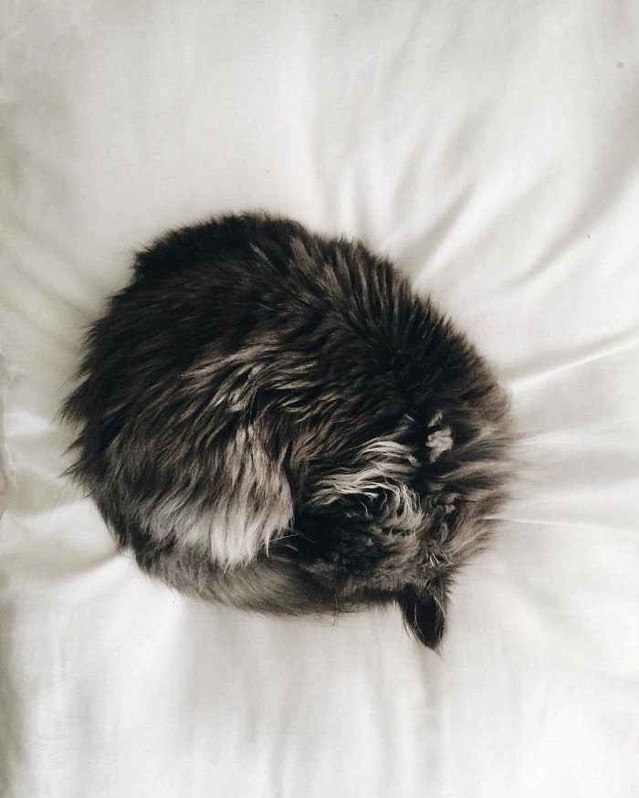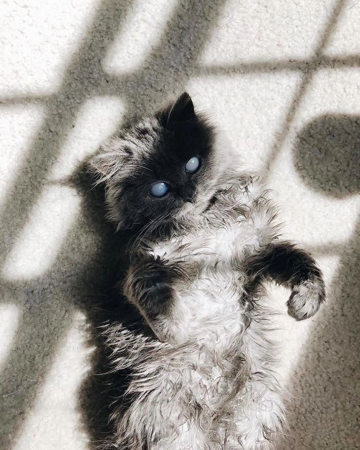 «Он странный социальный кот. Любит прижиматься и быть рядом с людьми. Он не мяукает, не дерёт мебель, не ломает вещи. 99% времени он просто спокойно чиллится с нами».