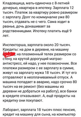 В итоге семья, едва держащаяся на плаву, начинает стремительно нищать, столкнувшись с тяжелой болезнью члена семьи или необходимостью незапланированных трат.