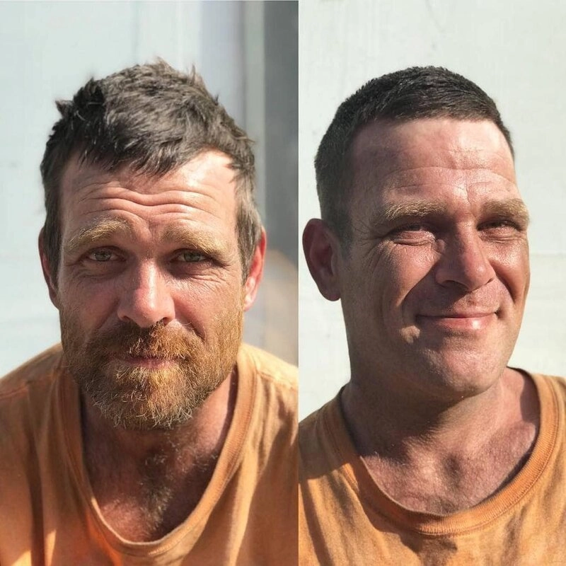 Парикмахер бесплатно стрижёт бездомных, полностью их преображая