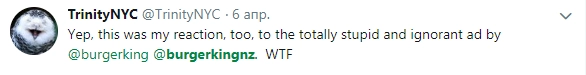 Реакция корпорации Burger King на бурю в интернете неизвестна, но видео исчезло из официального Instagram-аккаунта новозеландского отдела.