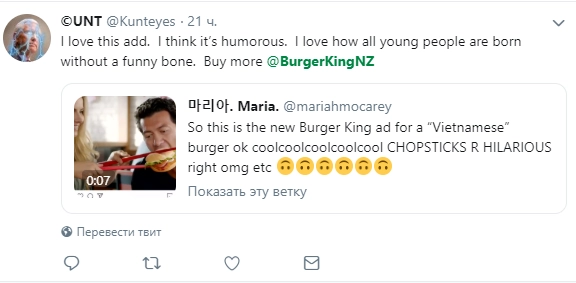 Другие комментаторы убеждены, что авторы видео не сделали ничего плохого: «Мне нравится этот ролик, он забавный. Умиляет нынешняя молодёжь, которая рождается без чувства юмора. Куплю-ка побольше бургеров».
