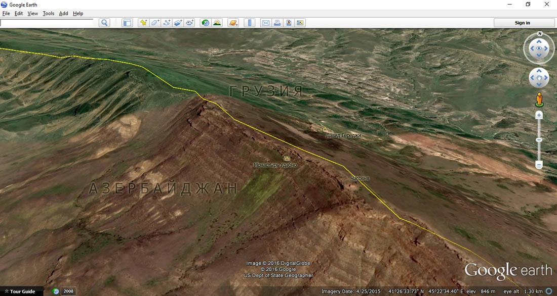 Так вот, этот самый монастырь Давид Гареджи расположен в 200 метрах по прямой линии от границы Грузии и Азербайджана. И на него азербайджанцы как раз не претендуют. Но дальше, если подняться совсем немного вверх по склону горы, на которой расположен монастырь, вы попадаете на спорную территорию.