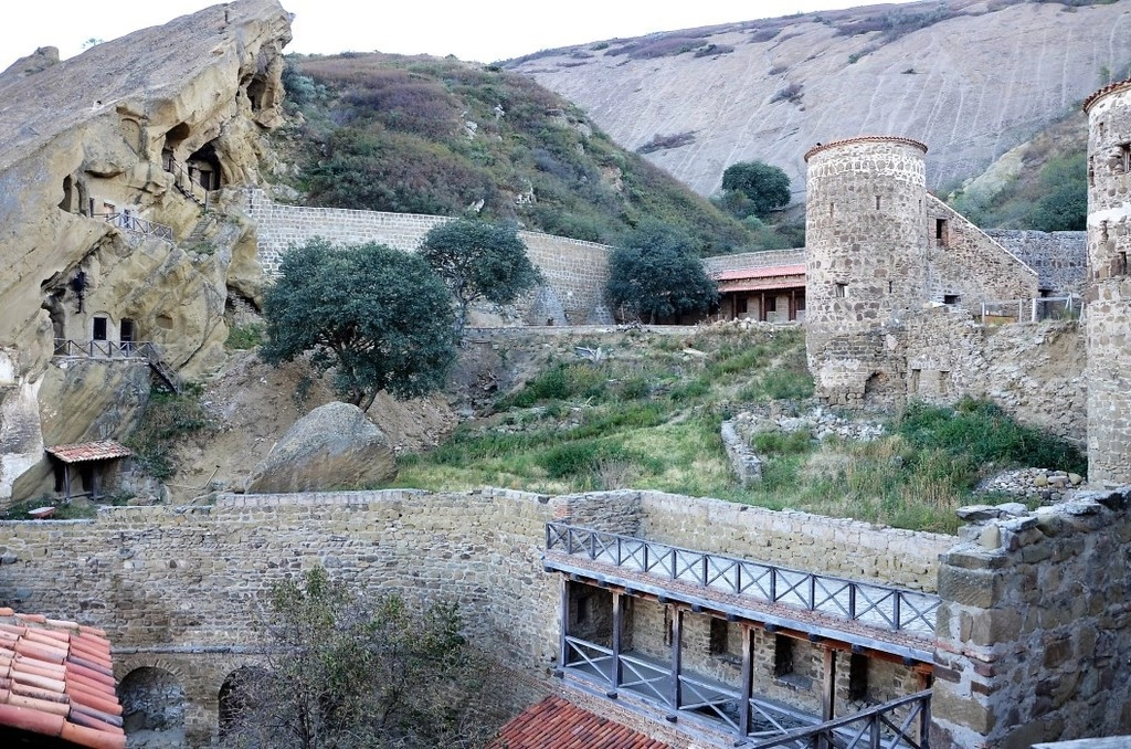 Столетиями грузинские православные монахи несли там службу, пока вдруг Азербайджан не заявил, что это их территория и монахи убирайтесь. Сейчас там пост азербайджанской армии, и эти 100 метров вам не пройти никак. Они превратили пещеры в укрепленный пункт и стоят там с оружием. Не знаю, какие у них указания сверху, но с учетом неуважения к чужой культуре и чувствам, а также к жизни человеческой (включая собственную) они легко пальнут в вас из автомата. Поэтому осторожно.