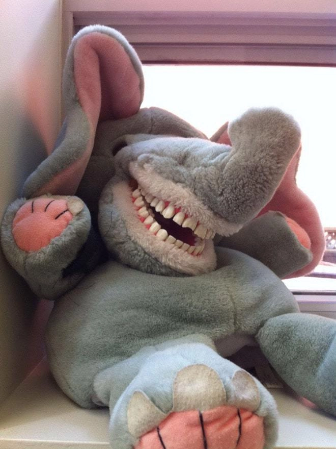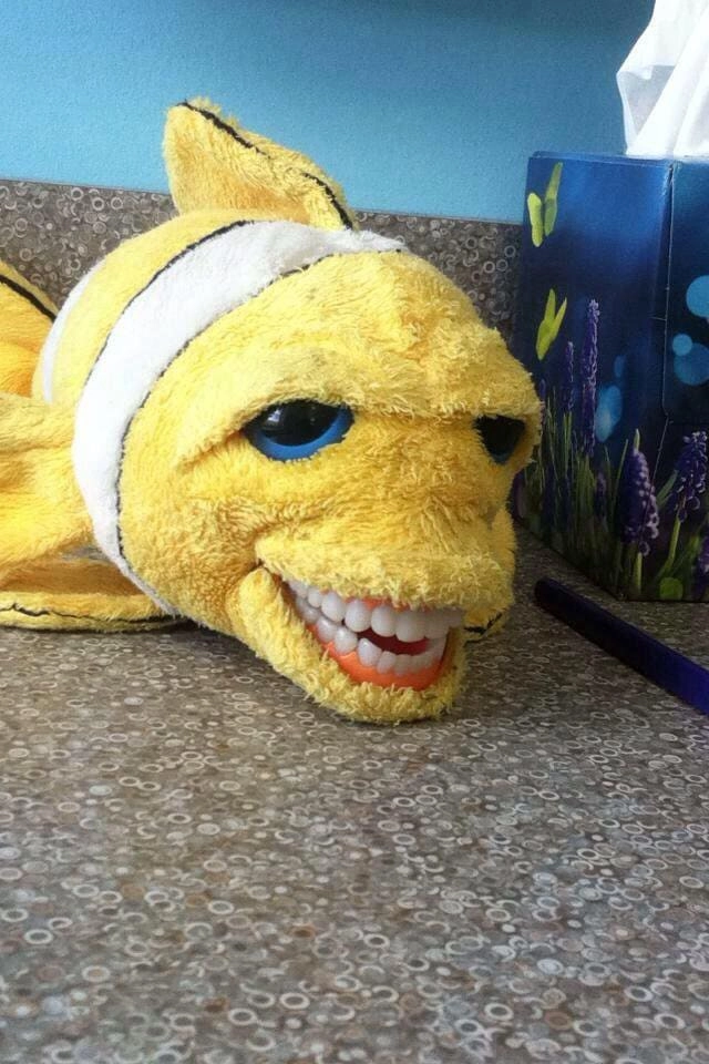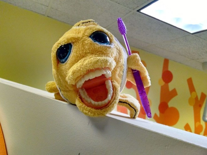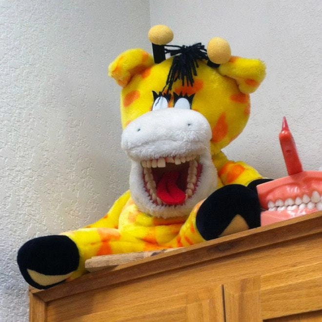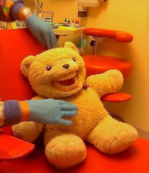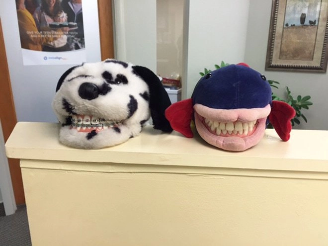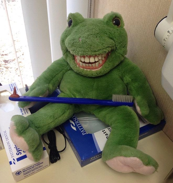 Детские стоматологи идут на разные ухищрения, чтобы суметь вылечить зубы ребёнку и чтобы он при это не плакал и не боялся. В ход идут весёлые обои, аквариумы с рыбками и разнообразные игрушки, которые могут похвастаться улыбкой в 32 зуба. Этих же зубастых монстров доктора используют для обучения детей гигиене. Вероятно дантисты полагают, что плюшевый мишка или лягушка с зубами — это очень мило. Но, глядя на некоторых игрушечных животных из кабинетов зубных врачей, хочется их поскорее развидеть. И страшно, и смешно — смотрите сами!