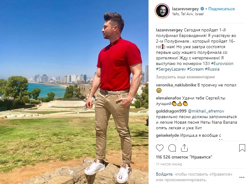 Представитель России Сергей Лазарев выступит под номером 13. Певец исполнит песню «Scream».