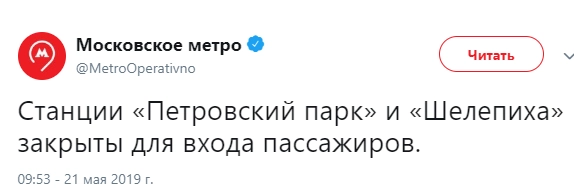 В столице закрыли вход на три станции Большой кольцевой линии метро — «Савеловская», «Петровский парк» и «Шелепиха».