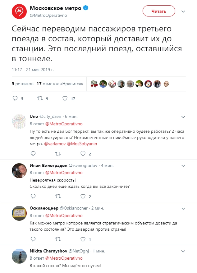 Позже пресс-служба метрополитена сообщила, что пассажиры всех трех поездов, застрявших в тоннеле, переведены в другие составы, которые доставили их на ближайшую станцию.