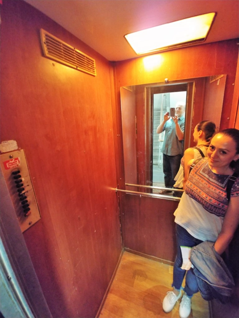 И с третьей стороны, в Ереване сохранилось достаточно много старых лифтов середины XX века, еще с теми деревянными дверцами и громадными круглыми кнопками. Безопасность катания на таких лифтах под вопросом, но ради экзотики лично мы рискнули. Пока живы!