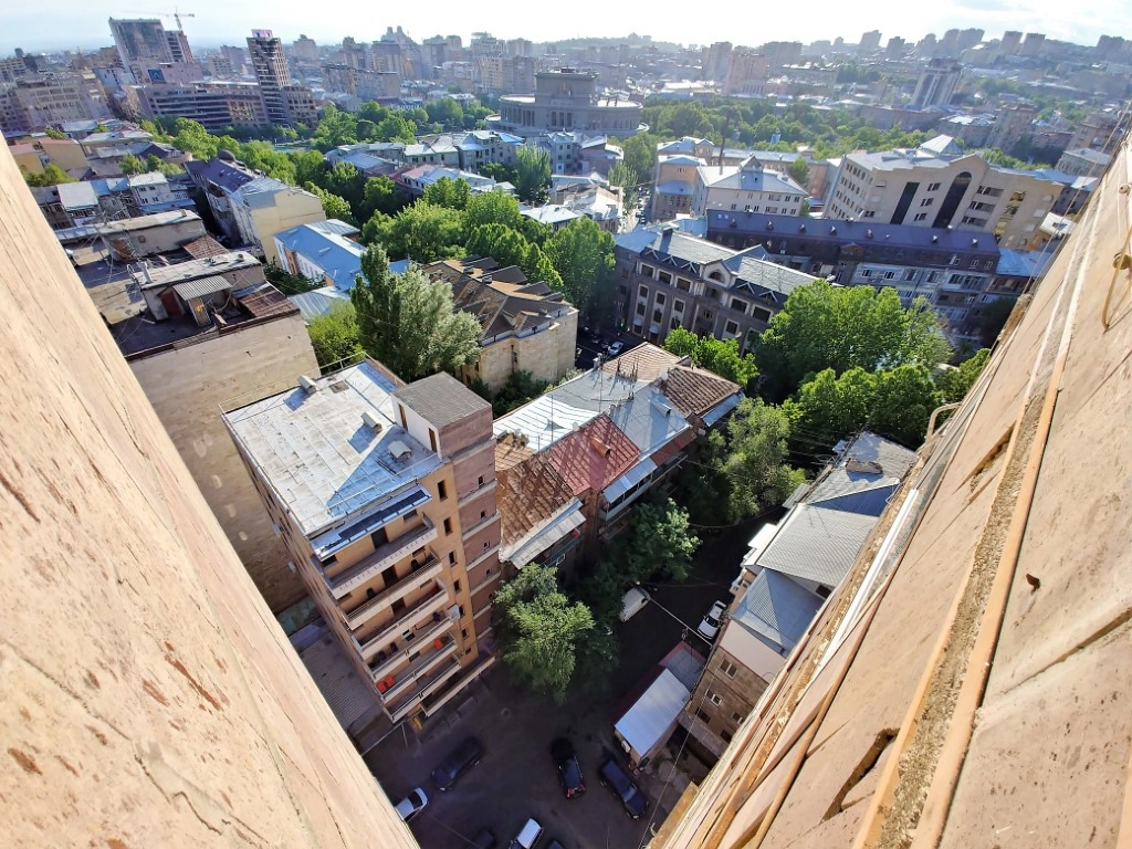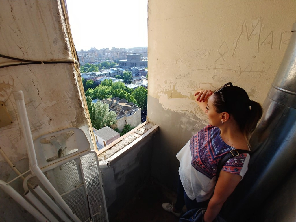 Поднялись на советскую 16-этажку, чтобы взглянуть как внутреннее устройство здания, так и панораму на центр Еревана.