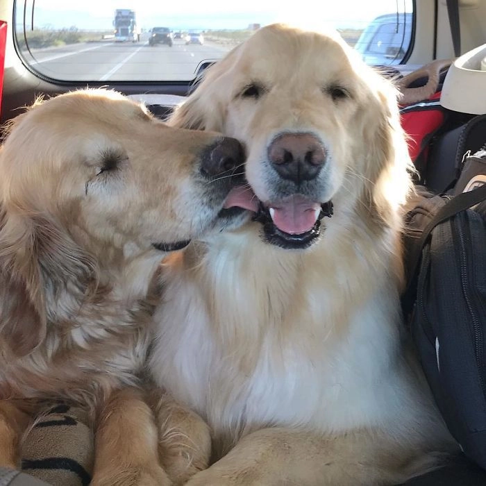 История дружбы этих двух золотистых ретриверов облетела интернет и растрогала тысячи людей по всему миру. Собака по кличке Адди (Addie) стала поводырем и самым верным другом для пса Джейка (Jake), который потерял зрение. И это как раз тот случай, когда друг познаётся в беде.