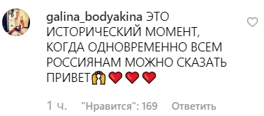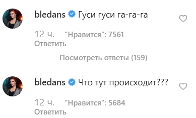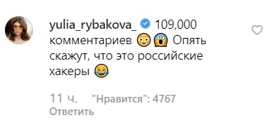 Российские звезды присоединились к комментариям соотечественников и стали оставлять на странице певицы шуточные записи, превратив аккаунт в чат. Среди них — шоумен Гарик Мартиросян, певец Сергей Жуков, актриса Эвелина Блюданс, модель plus-size Юлия Рыбакова, дизайнер Белла Потемкина, певица Ирина Нельсон, актер Андрей Батт, телеканал ТНТ и футбольный клуб «Локомотив».