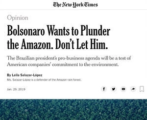Это не сценарий голливудского боевика, а начало статьи в американском журнале «Foreign policy» под заголовком «Кто спасёт Амазонию (и как) ?», где рассматривается гипотетический сценарий чрезвычайных методов влияния на Бразилию, которая на глазах всего мирового сообщества ускоренными темпами гробит глобальный мировой ресурс — дождевые леса Амазонии, оказывающие решающее влияние на климат планеты.
