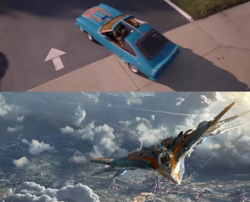 В начале второй части «Стражей Галактики» машина Эго имеет такие же цвета, что и корабль Питера