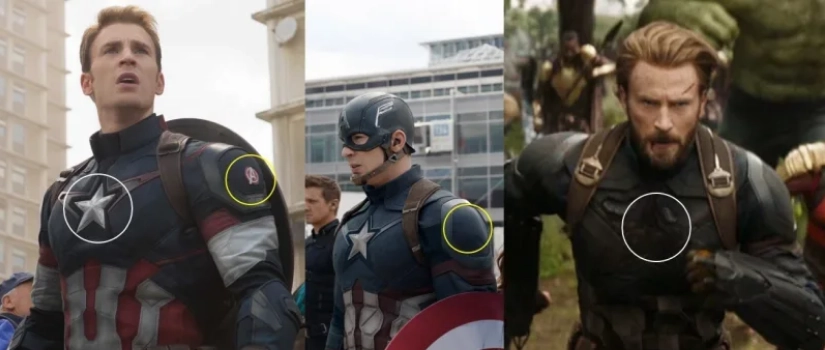 Стив убирает звезду и значок Мстителей с костюма, когда перестает быть Капитаном Америкой