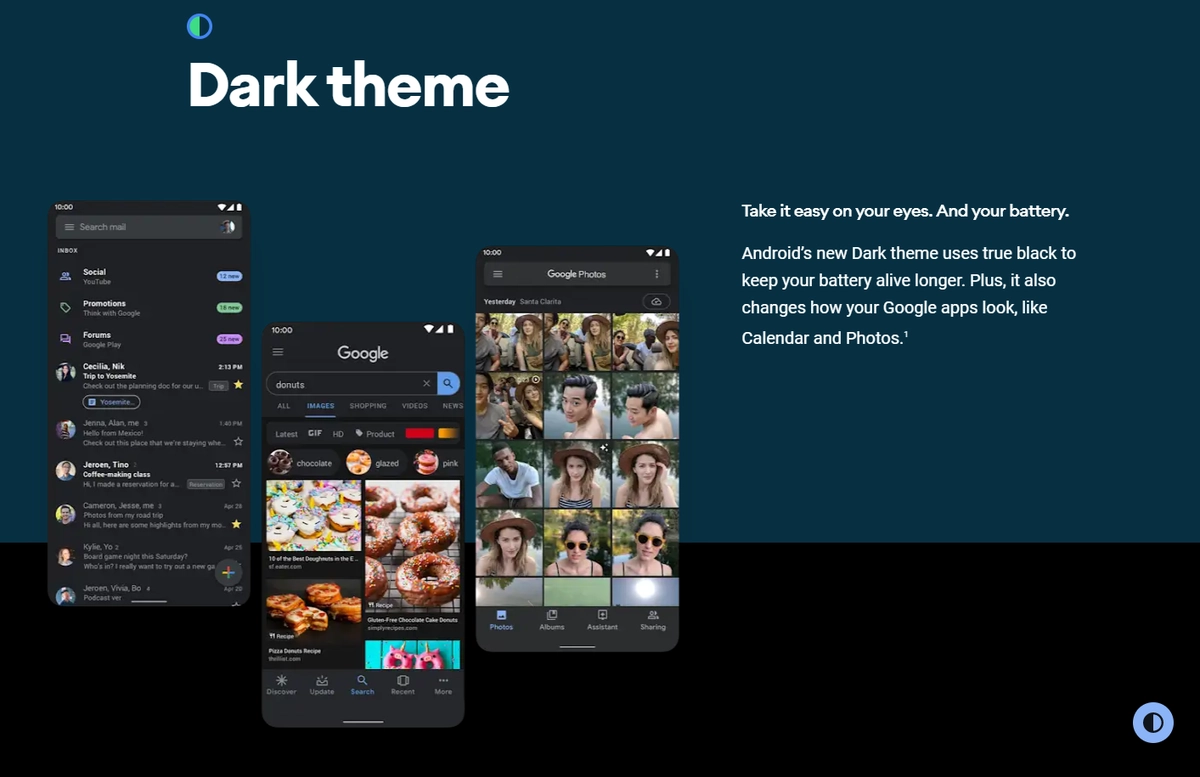 Главное нововведение — темная тема. Она затемняет интерфейс системы, фирменных приложений и сторонних программ. Это значительно снижает энергопотребление в смартфонах с OLED-экранами, каждый пиксель которых работает независимо от остальных. На черном цвете подсветка пикселей вовсе отключается, что разительно улучшает автономность.