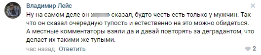 Многих мужчин — и не только с Северного Кавказа — задела такая акция. В комментариях они объясняли, что женщины неправильно поняли спортсмена, и намекали на возможные разборки с «лицами кавказской национальности».
