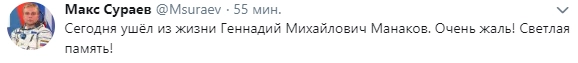 О его кончине сообщил в Twitter депутат Госдумы, космонавт Максим Сураев.