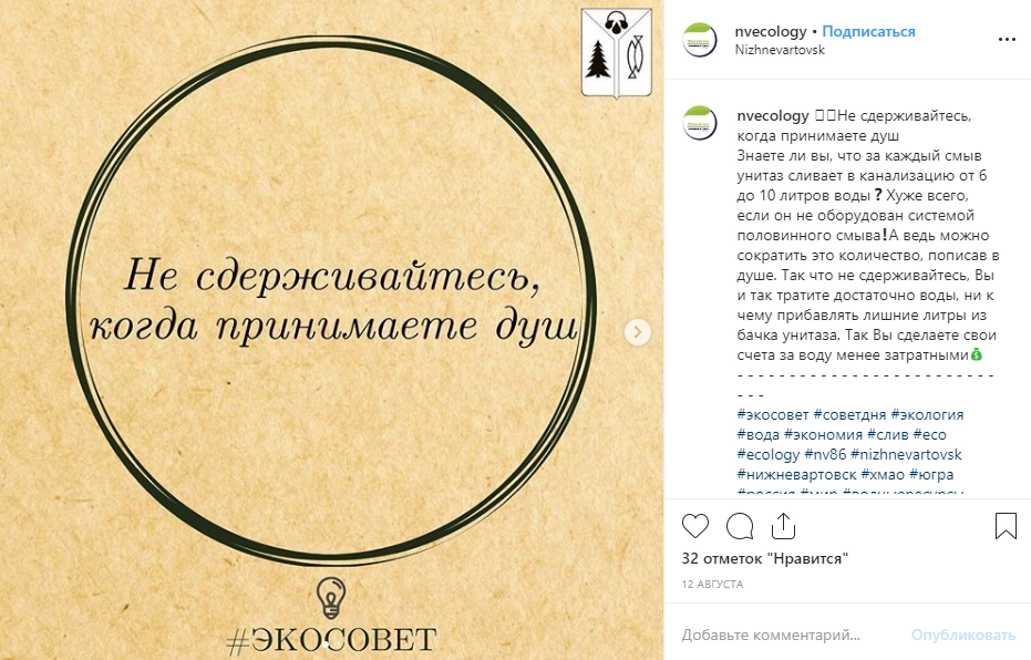 Городское управление экологии Нижневартовска шокировало пользователей Рунета. На официальной странице управления в Instagram был опубликован «полезный совет» по экономии воды: для этой цели жителям города на Оби предлагается ходить «по малой нужде»… в душ.