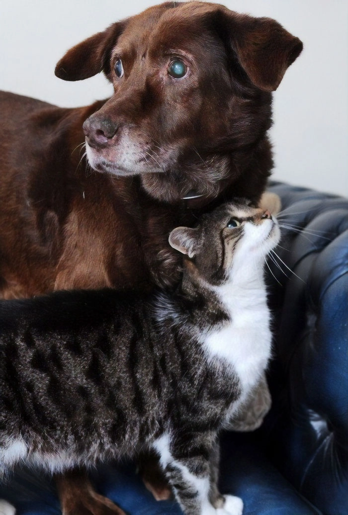 У лабрадора по кличке Тервел катаракта, он на 90% слеп. Из-за того что пес часто бился об углы и получал травмы, он перестал выходить за пределы своей собачьей лежанки, но все изменилось, когда в доме появилась кошка Пудитат. Она постоянно играет с Тервелом и учит его лучше ориентироваться в доме.