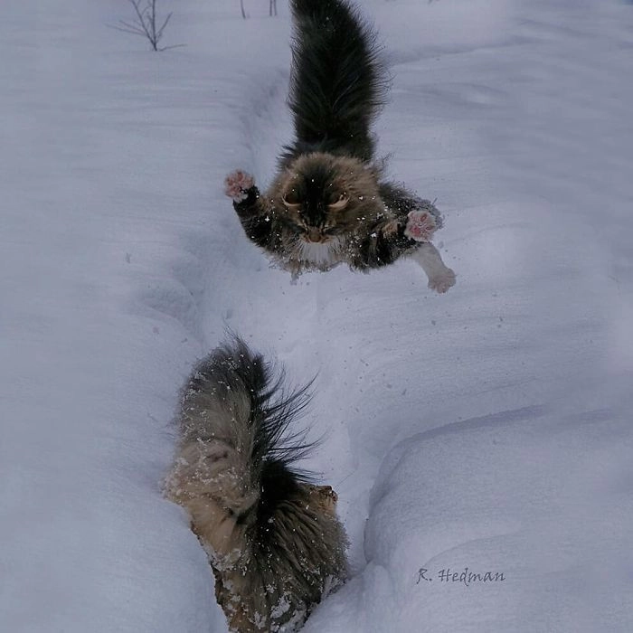 Собрали для вас лучшие фото финских кошек, играющих в снегу. Потому что почему бы и нет!
