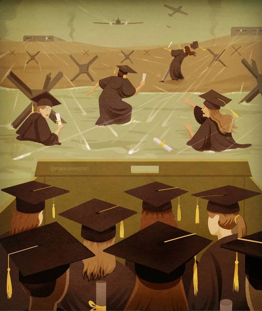Художник из Италии Марко Мелграти рисует иллюстрации для различных журналов. Его отличительная черта — способность подмечать детали и изображать их в своих работах, используя метафоры и символизм.