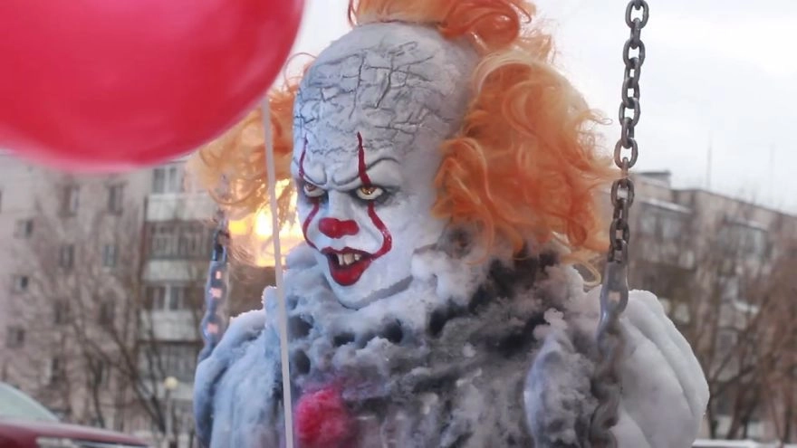 Русский художник Александр Савский слепил очень необычного снеговика. Вернее, очень жуткого. Снежный Пеннивайз — персонаж произведения Стивена Кинга «Оно» и одноименных фильмов появился во дворе обычного жилого дома. Александр решил принять участие в конкурсе снеговиков и выбрал для своей снежной скульптуры образ страшного клоуна. Трудиться над снеговиком пришлось несколько часов, а перед этим ждать идеальных погодных условий, но результат явно стоил того. Клоун на качелях выглядит впечатляюще, главное, чтобы он ни у кого не вызвал сердечный приступ.