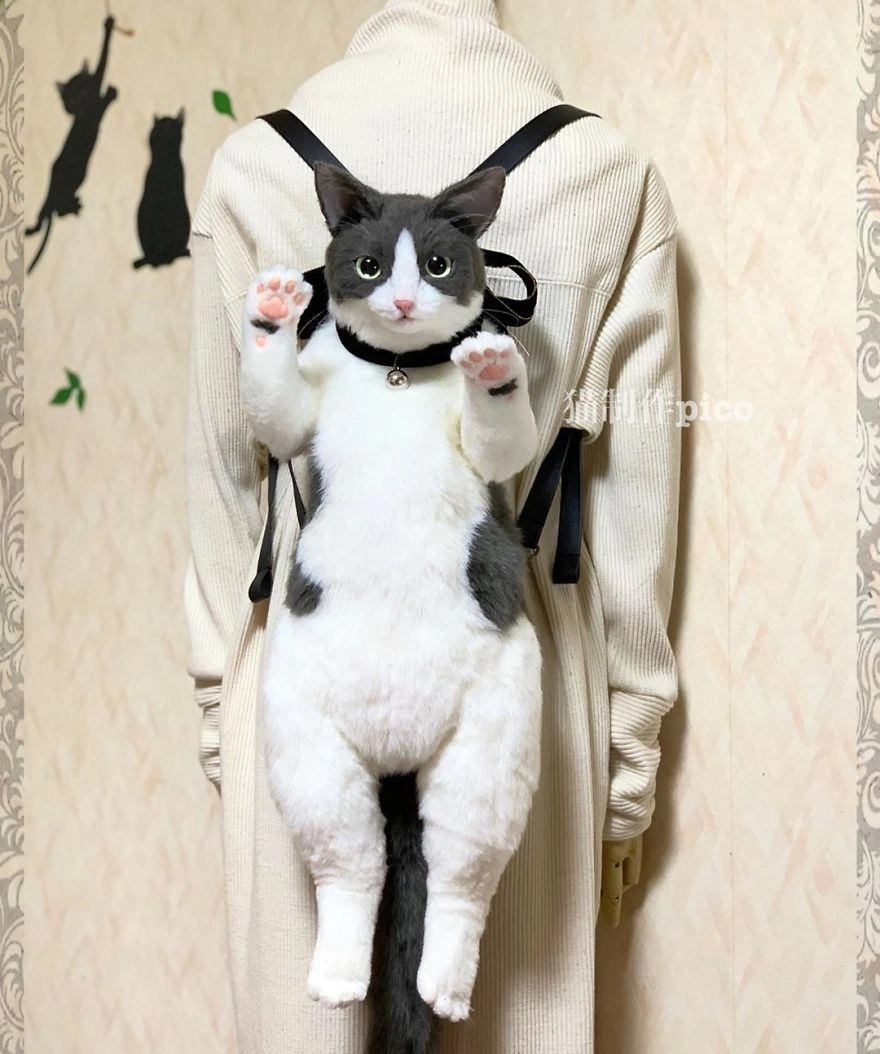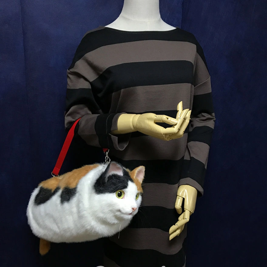 Художница из Японии Пико Михо делает очень нестандартные сумки. Они выглядят точь-в-точь, как домашние кошки, даже размера такого же. С одной стороны, они кажутся невероятно милыми и забавными, но с другой — немного пугают своим натурализмом. Возникает ощущение, будто девушка, прежде чем начать карьеру дизайнера, много лет увлекалась таксидермией. И это ощущение не обманчивое. Японка действительно в прошлом работала с чучелами животных.