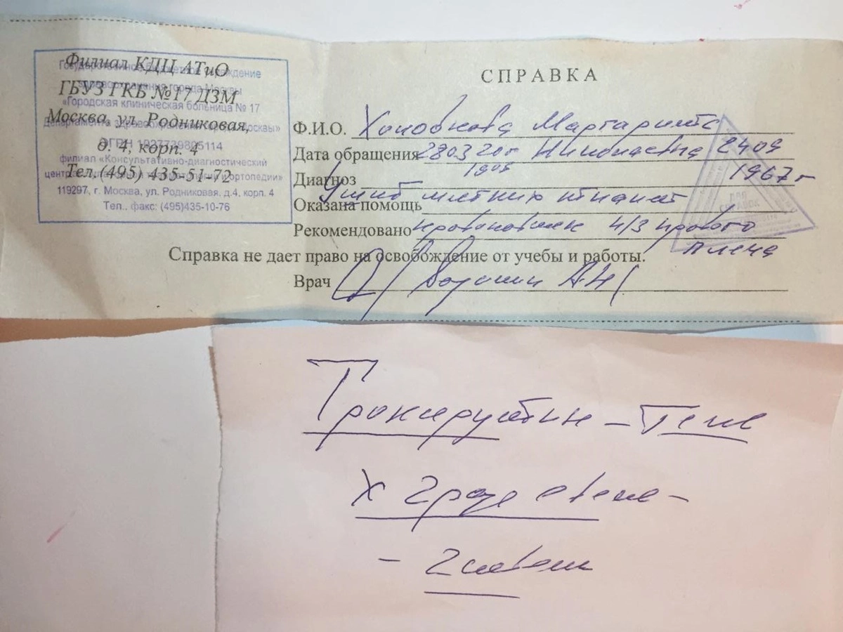 По словам приемной матери, это было сделано без предупреждения. В квартиру, как утверждает Маргарита, они попали обманным путем: попросили слесаря позвонить в квартиру, якобы проверить трубы. Приемная мать пыталась поговорить с сотрудниками, но это было бесполезно. Женщина получила травму, которая была засвидетельствована медиками.
