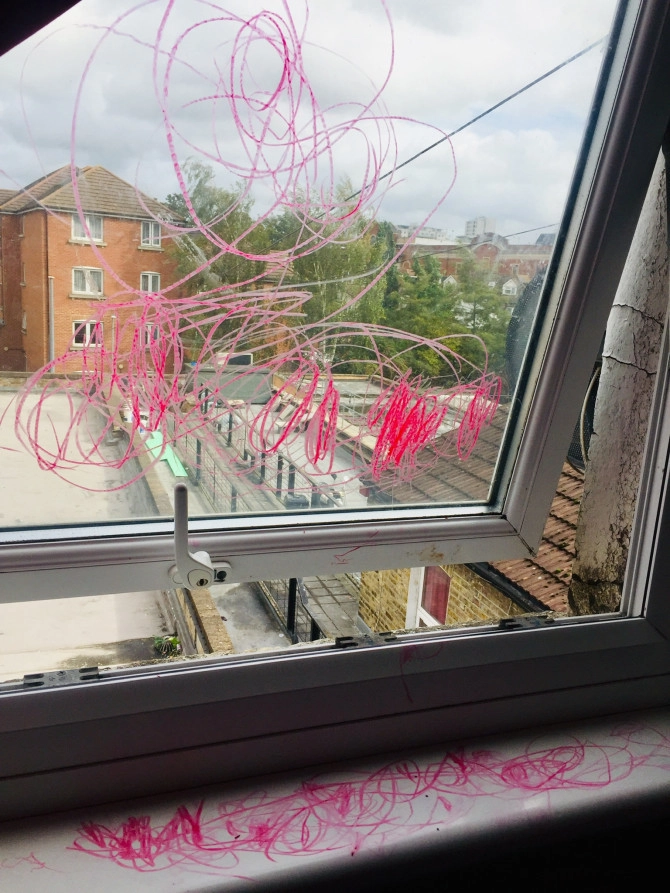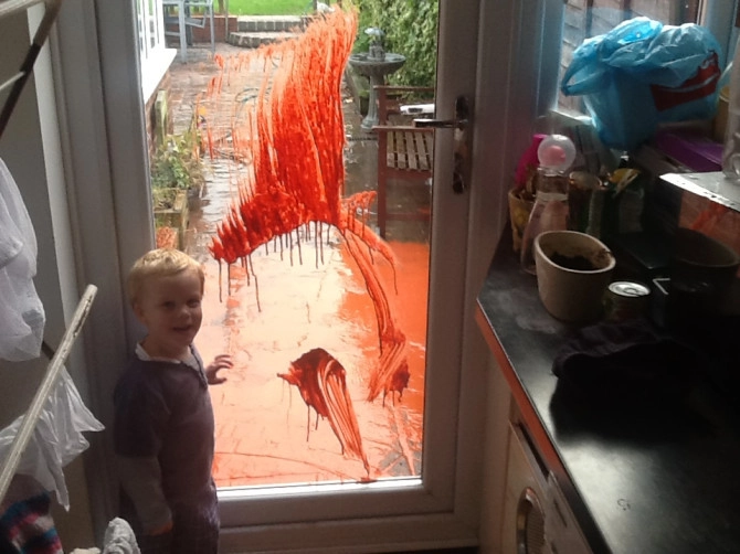 Мама этого молодого художника чуть не испытала сердечный приступ, увидев красную краску на стекле