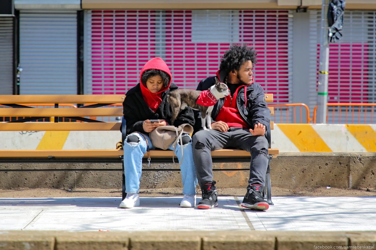В северной части по центру Бродевея сделана зеленая полоса с лавочками на перекрестках и там всегда сидят люди.