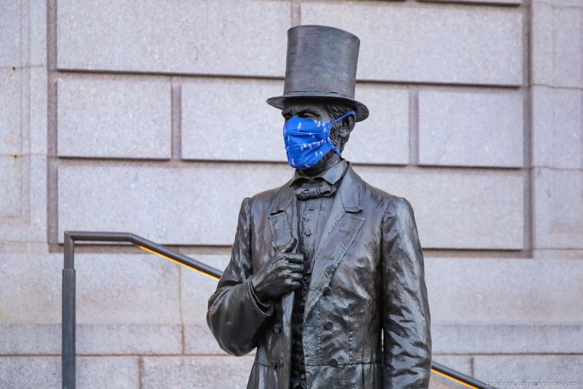 Ликольну стоящему у Исторического общества кто-то надел маску.
