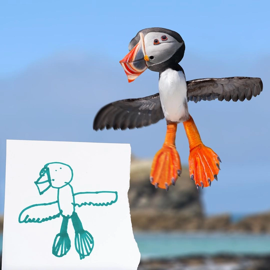 У Тома Кертиса из Великобритании растет двое сыновей: семилетний Дом и трехлетний Эл. Пару лет назад, перебирая художества старшего сына, мужчина задумался над тем, как бы могли выглядеть животные, если бы их создали по образцам его ребенка. И вот уже более трех лет Том воплощает рисунки своих детей в диджитал-арт.