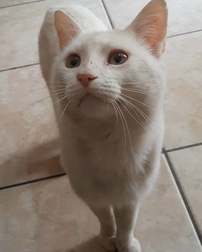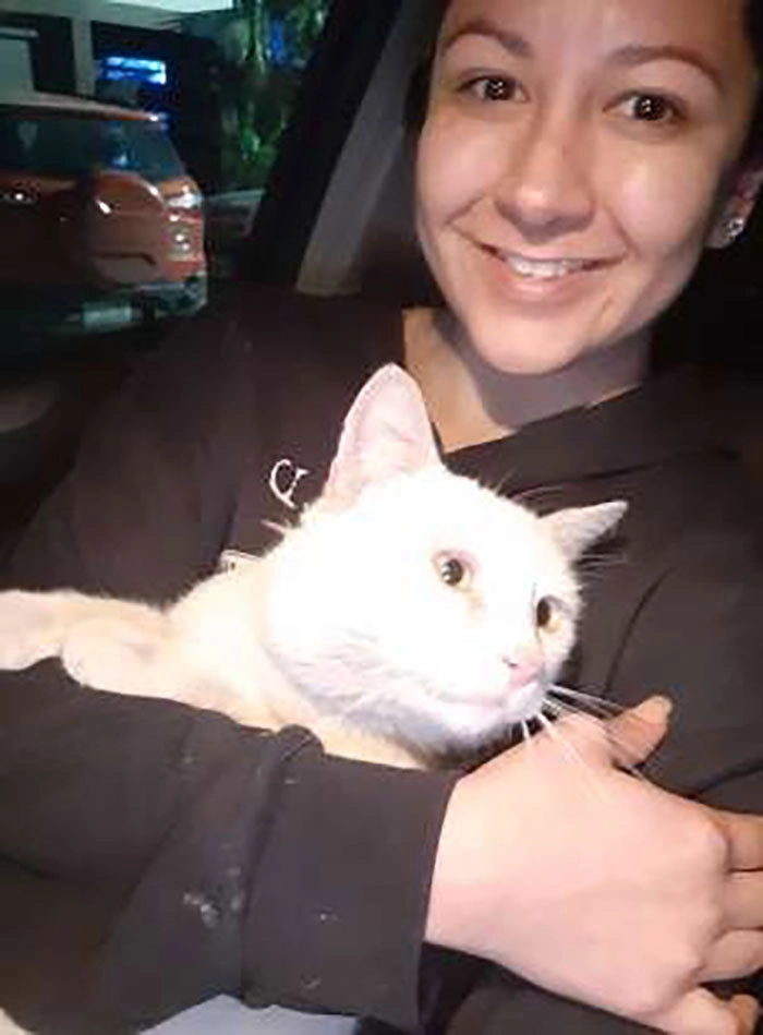 Белый бесхвостый кот из Мексики круто изменил свою жизнь, пытаясь раздобыть немного еды. Однажды бездомного котофея, сидящего рядом с супермаркетом, заметила 33-летняя учительница начальной школы Таня Лизбет Сантос Кой Това.