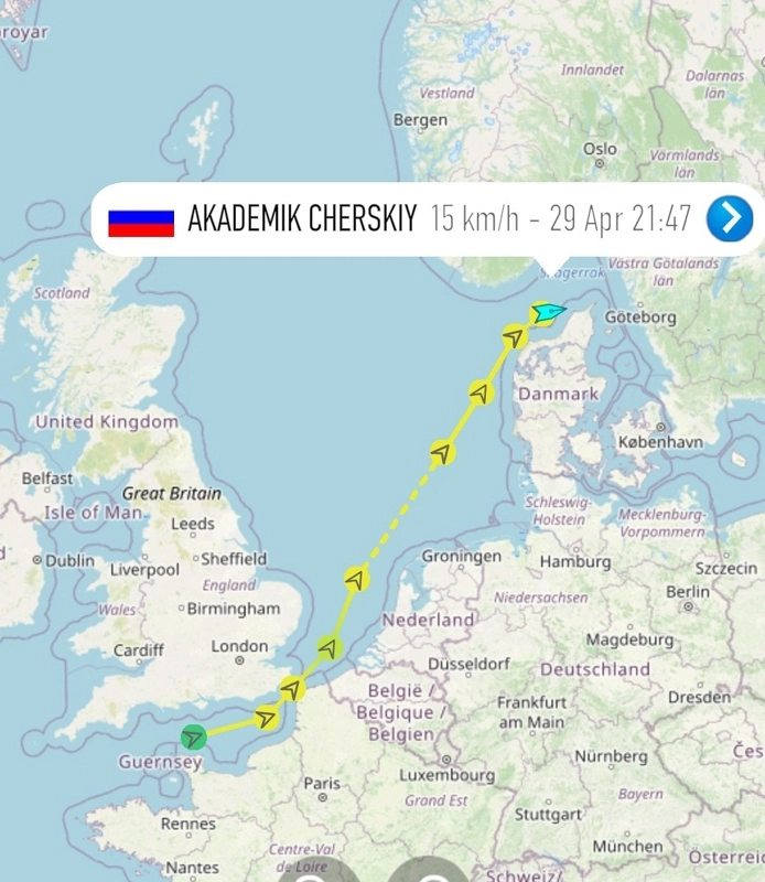Как пишет ТАСС, в феврале «Академик Черский» вышел из Находки в Сингапур. Затем вдоль берегов Африки он достиг Канарских островов. После этого был взят курс на Порт-Саид в Египте, но судно не прошло Гибралтарским проливом, а направилось на север Атлантики.